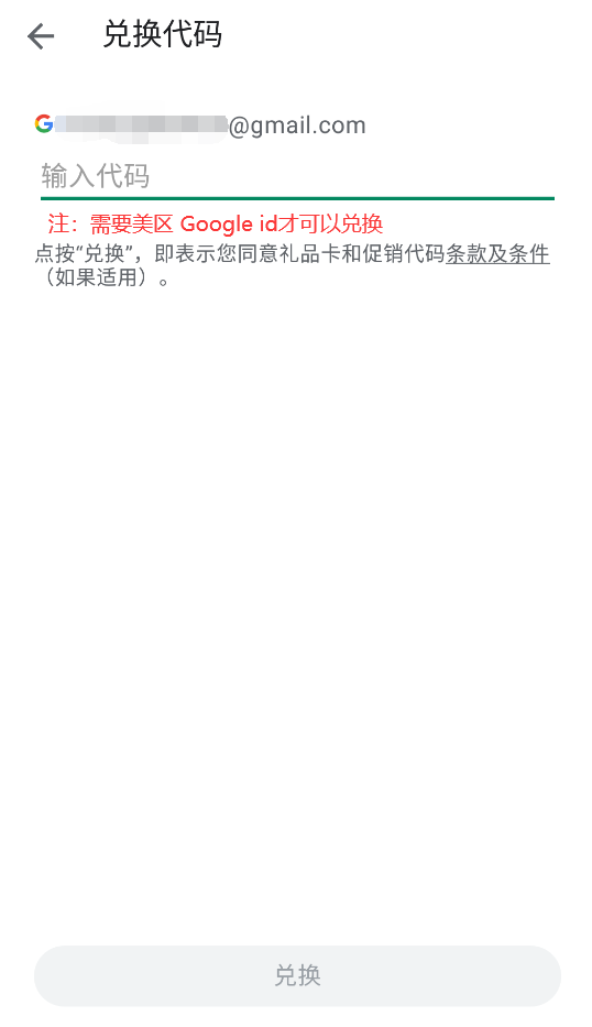 请先核对谷歌账号是否正确,然后输入购买的兑换代码,点击兑换。