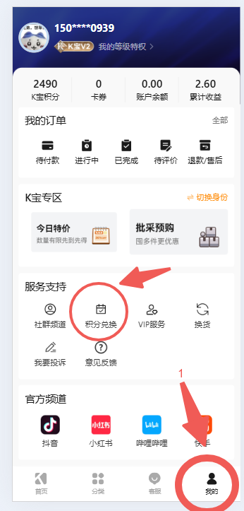 积分兑换方法:【下载kardz的APP(没有APP有平台链接也行,必须手机端操作)】—【点击个人中心】——【点击积分兑换】