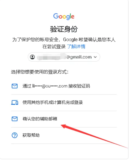 1.9.5谷歌辅助邮箱使用方法1. 正常输入账密登录;2. 《验证身份》选择<确认您的辅助邮箱>;3. 输入辅助邮箱后,即可登录成功。*如购买详细地区的号,请选择对应地区登录。没有标注地区的,默认为美国地区。作者:好开心 创建时间:2024-12-25 15:36最后编辑:好开心 更新时间:2024-12-25 15:37